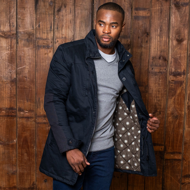 Subtle branding details add a touch of elegance to this parka, including a metal Nguni rivet badge on the left chest, branded eyelet detail on the centre placket, and a metal Kingsley trim on the back yoke. Elevate your outerwear game with the Kingsley Heath So-Afr Luxury Parka – where style meets functionality in perfect harmony.